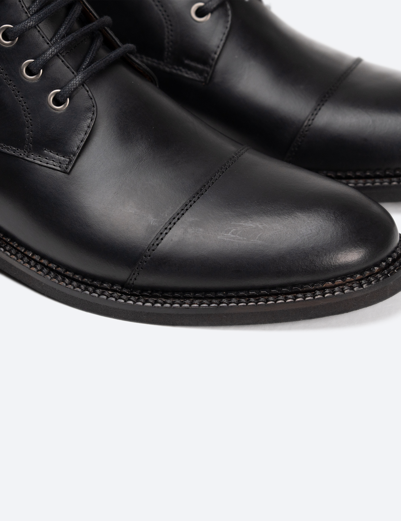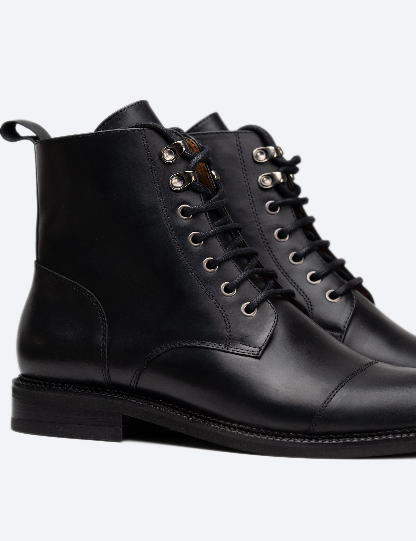 El proceso comienza con un minucioso estudio del cuero que se va a utilizar; tras encontrar la mejor pieza, el artesano la corta y le da forma alrededor de la horma para formar la parte superior. Esta se martilla delicadamente para suavizar las costuras y las partes en contacto con el pie. Ahora, la parte superior está lista para pegarse a la plantilla y luego unirse a la entresuela; el artesano guía el zapato bajo una línea laser con precisión y maestría. La suela de Eva Termoplástica posee bordes alisados, pulidos y cepillados. Su fabricación es un proceso tradicional que requiere técnica y destreza.