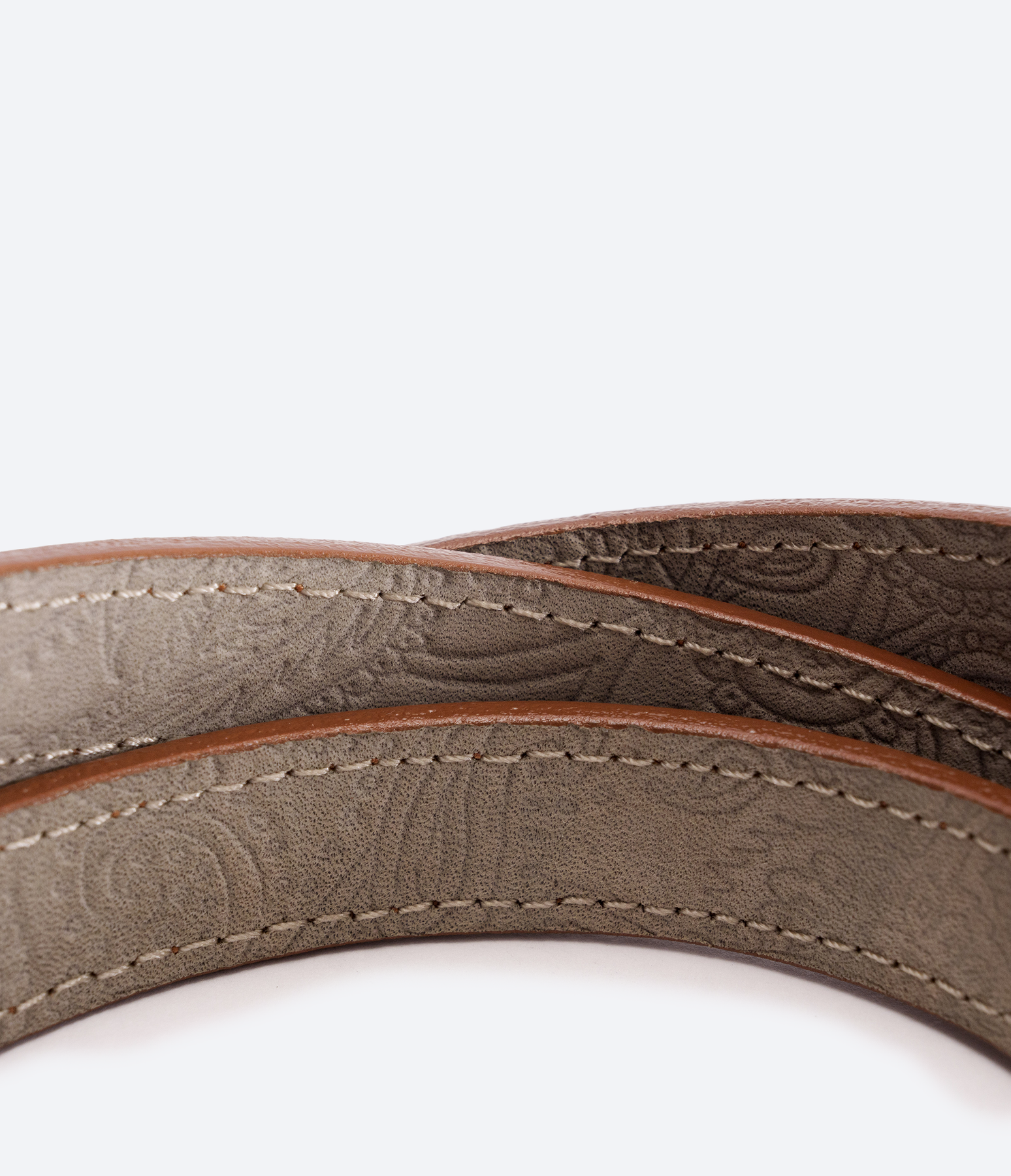 La construcción de nuestro cinturón utiliza un método de construcción que fija el cuero mediante un proceso de doble costura esto hace que la durabilidad sea mucho más alta y en donde soporte mucha más abrasión.
