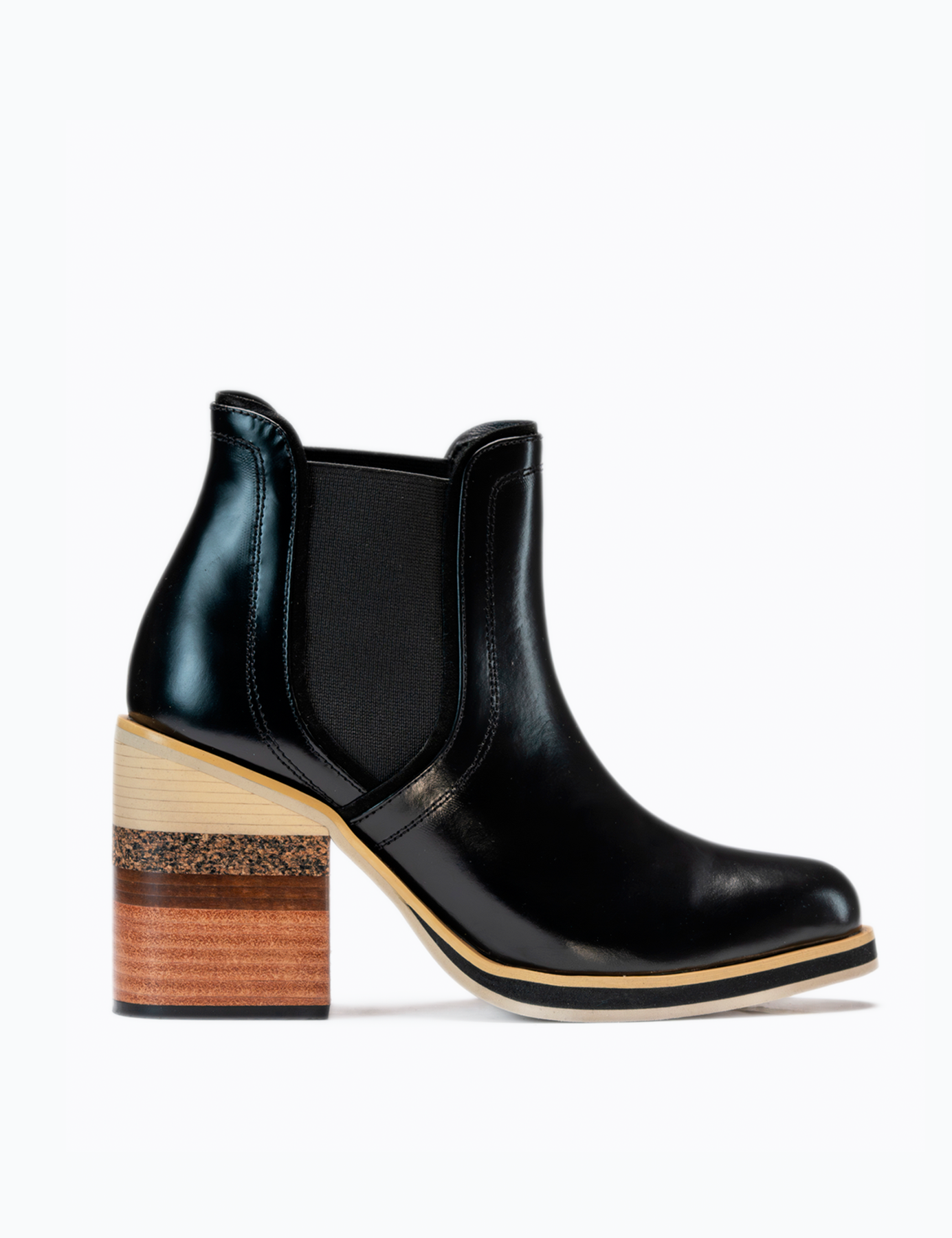 Suela: Armada a mano, tacón de madera forrado en cuero